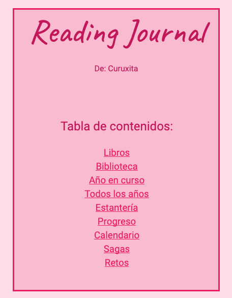 Un "reading journal" es un registro de todos nuestros libros añadiendo además muchos datos de interés; autor, fecha de publicación, número de páginas, puntuación... yo además, añadí otros datos que desde mi punto de vista resultan interesantes; retos, estantería, sagas, etc. así es más divertido rellenarlo y además de para tener un control de nuestra biblioteca, sirve para motivarnos a leer y a mantenerlo actualizado.